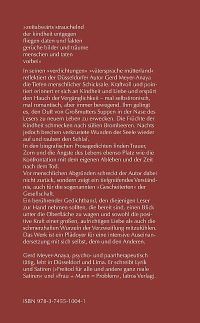 Gerd Meyer-Anaya Graf-Recke-Straße 41 40239 Düsseldorf Telefon: 0211 68 38 10 2024 © Gerd Meyer-Anaya |